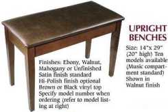 All Upholstered benches have 10 models available with music compartment standard.